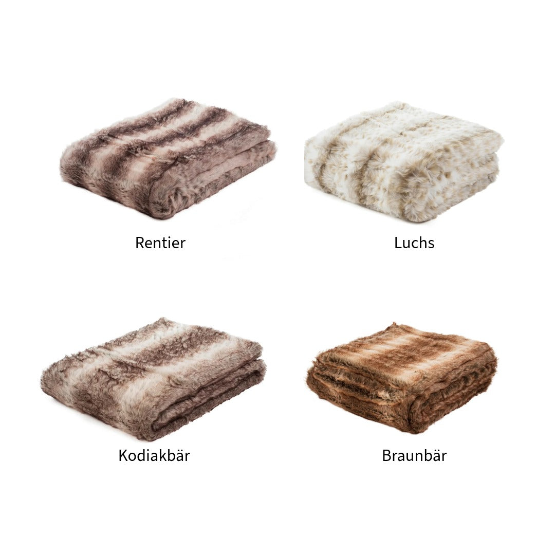Gözze Felloptik Kuscheldecke 150x200 cm – Flauschige Wohndecke in Luchs, Rentier, Braunbär & Kodiakbär