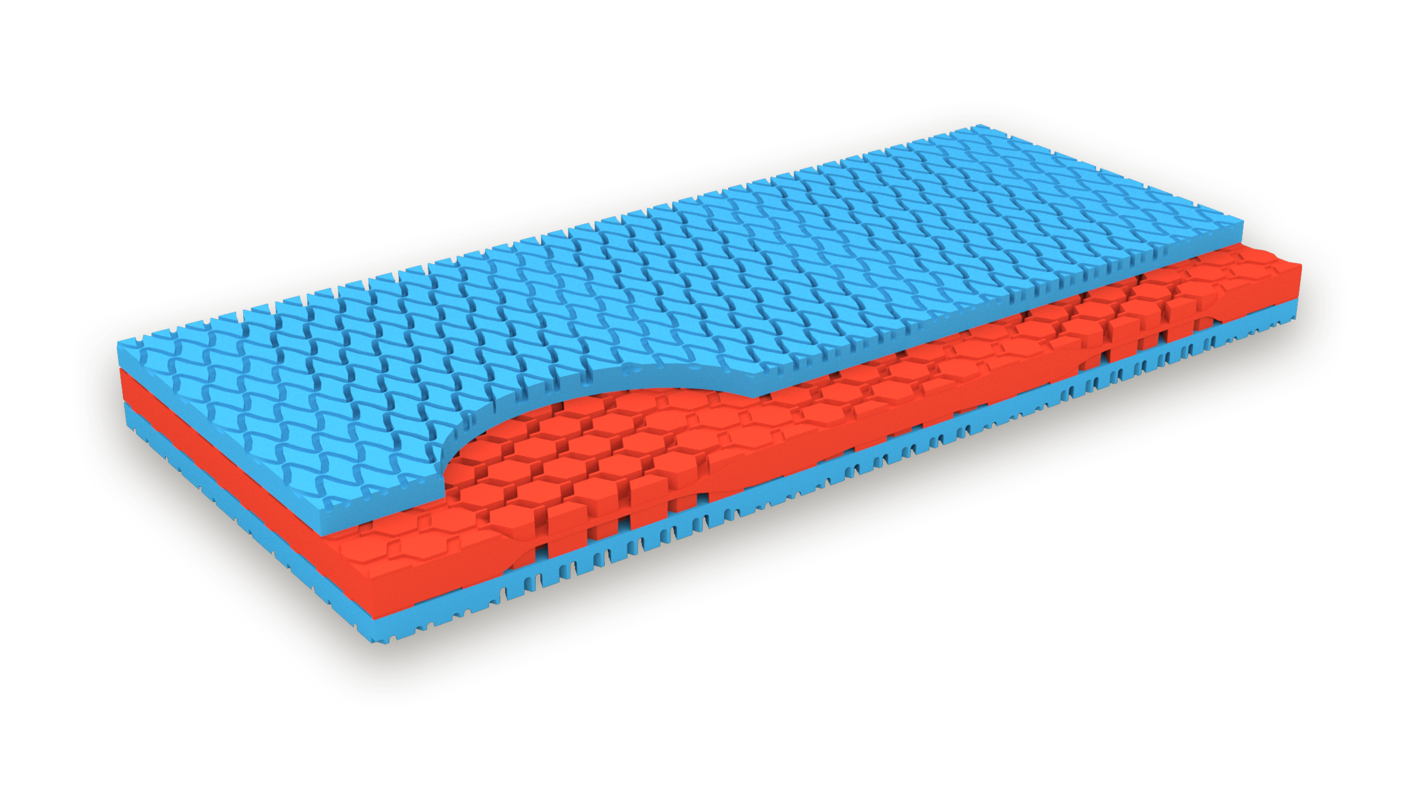 Die fließenden Übergänge sorgen für optimale Einsinkwerte und Körperunterstützung in jeder Schlaflage bei perfekter Belüftung schon an der Matratzenoberfläche.
