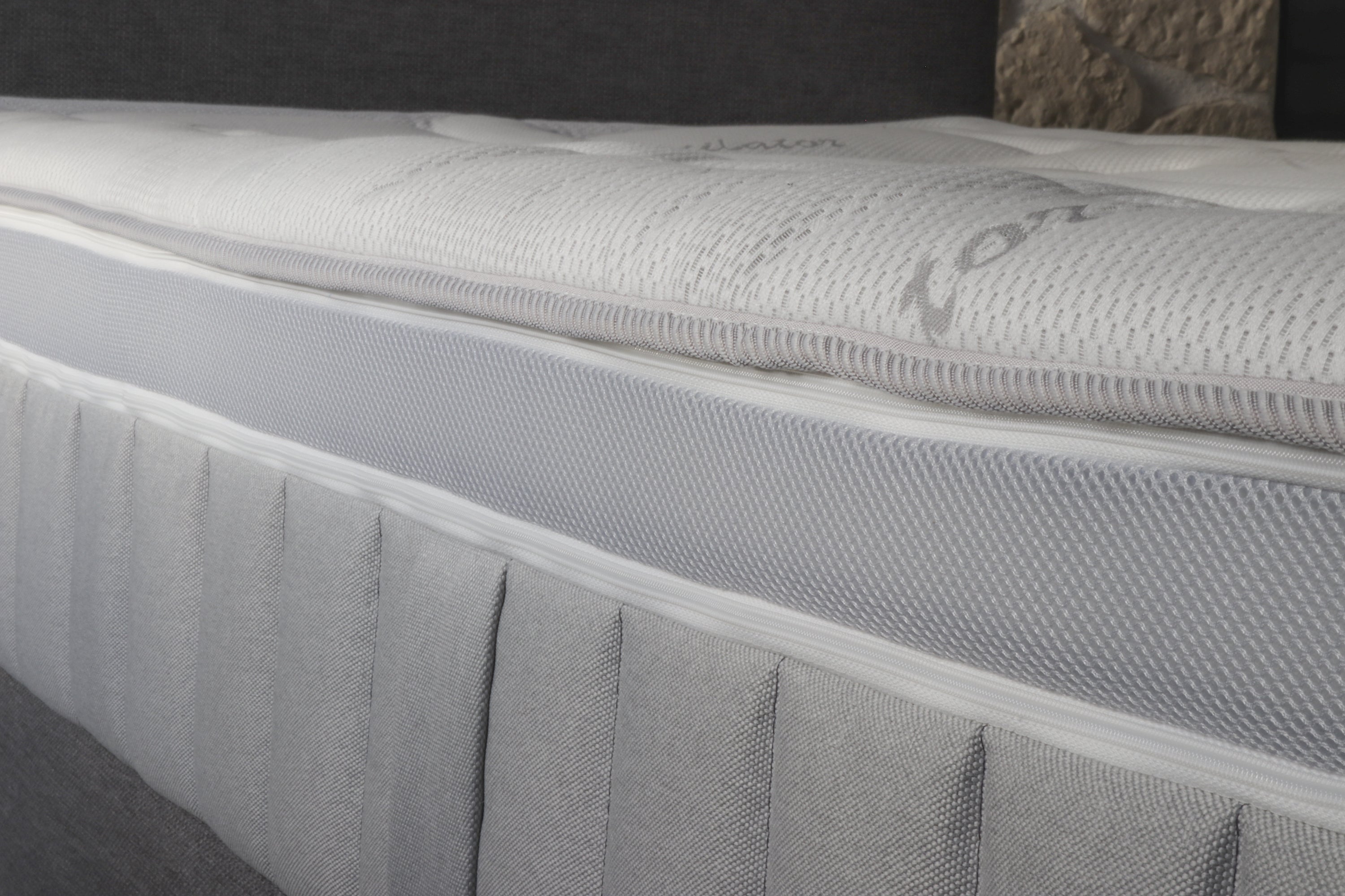 • Atmungsaktives 3D-Abstandsgewirk für Topper und Unterwanne